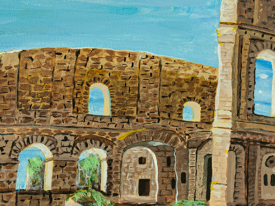 | Colosseum ORIGINAL 1 OF 1 – THE CONCEPT BEHIND THE PAINTING The colosseum in Rome dates back to 70AD and shows the best & worst of humanity. It’s walls resonate with gladiatorial conquests, slavery & death. It also depicts human ingenuity, endeavour and architectural magnificence. In Rome the Colosseum is engulfed in the chaos of traffic, buildings and people. I have chosen to place it in the quiet harmony of nature. I HAVE RETIRED THE COLOSSEUM!! DATE:- 2016 ACRYLIC ON CANVAS Size:- 70cm x 60cm x 3.5cm Price £320 ARTIST :- Nickos Lestas |